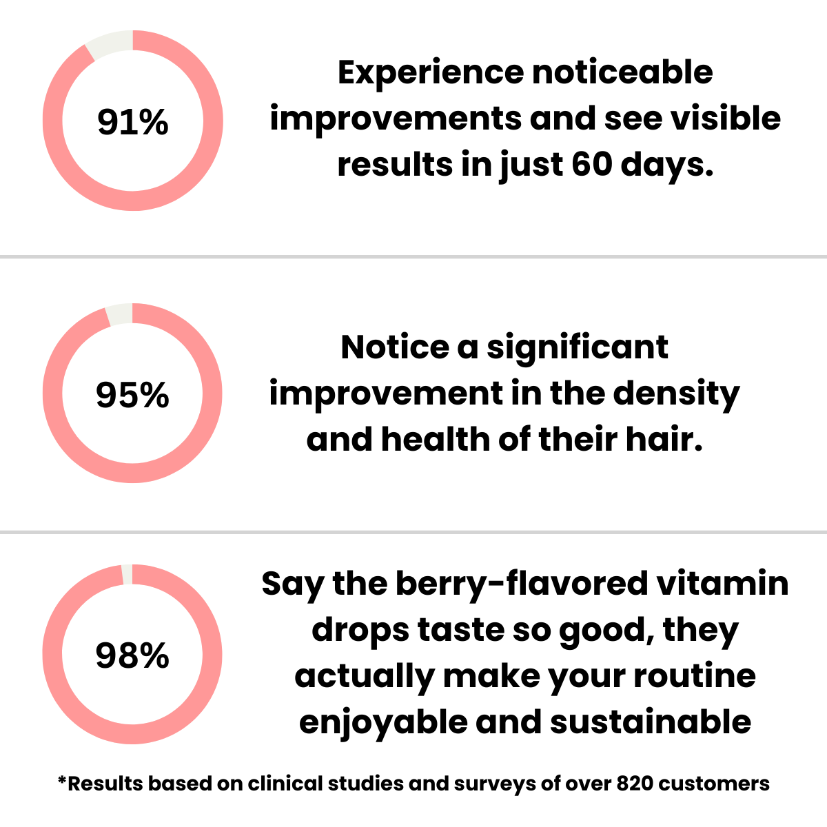 The vitamin drops help balance hormones and block DHT, the root cause of follicle shrinkage.