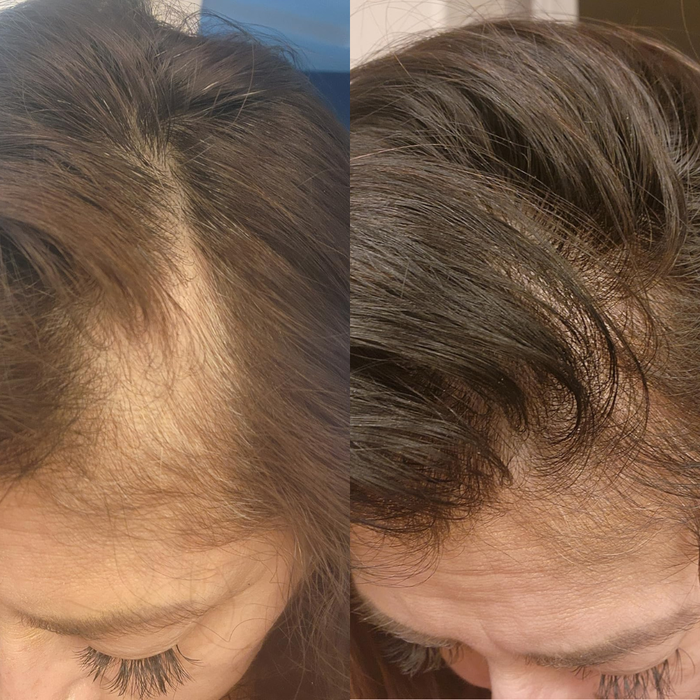 Visibly thicker hair. Sparse areas look filled in. Renewed density.*