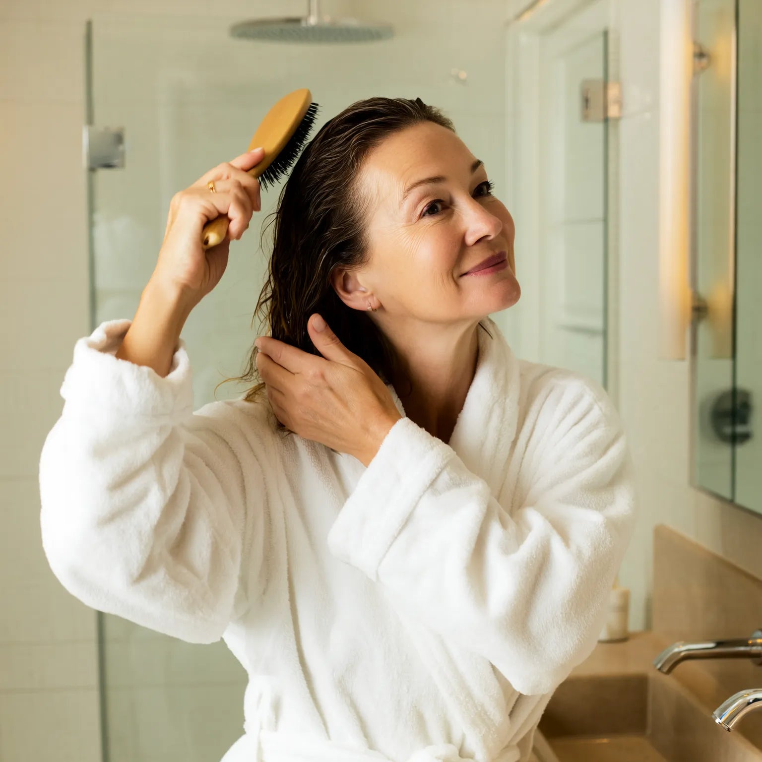 Reactivates dormant follicles and extends the growth phase, kickstarting faster, fuller regrowth where hair was thinning. Clinically shown to improve density in women over 40.